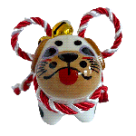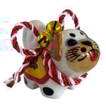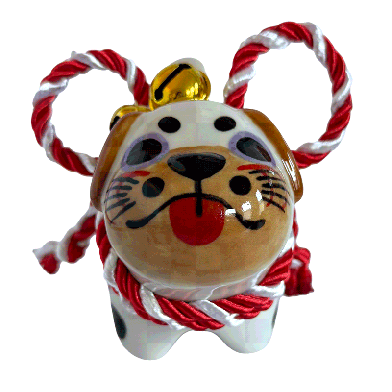 Inspired by the traditional Inu Hariko, a beloved Japanese papier-mâché dog, this ceramic piece features a unique pug design. The figurine is adorned with a rope tied in a simple bow and small bells.